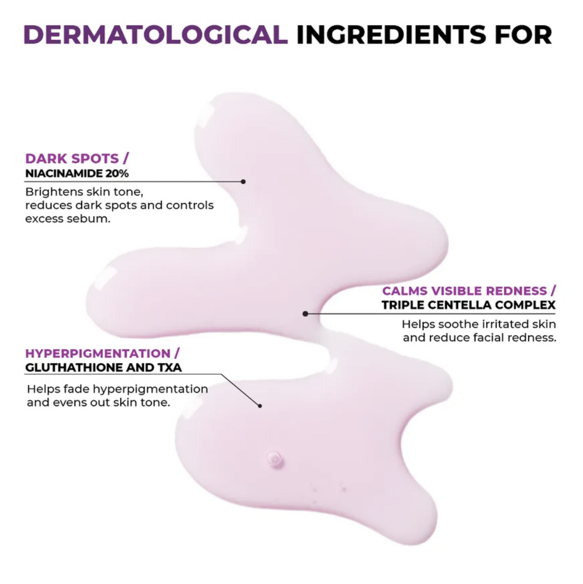 Suero de alta potencia formulado con 20% de niacinamida, diseñado para mejorar visiblemente el tono desigual, reducir manchas oscuras y controlar el exceso de sebo. Ayuda a minimizar la apariencia de poros, fortalece la barrera cutánea y aporta un acabado más uniforme y luminoso sin sensación pesada. Ideal para rutinas enfocadas en hiperpigmentación, textura irregular y piel opaca.